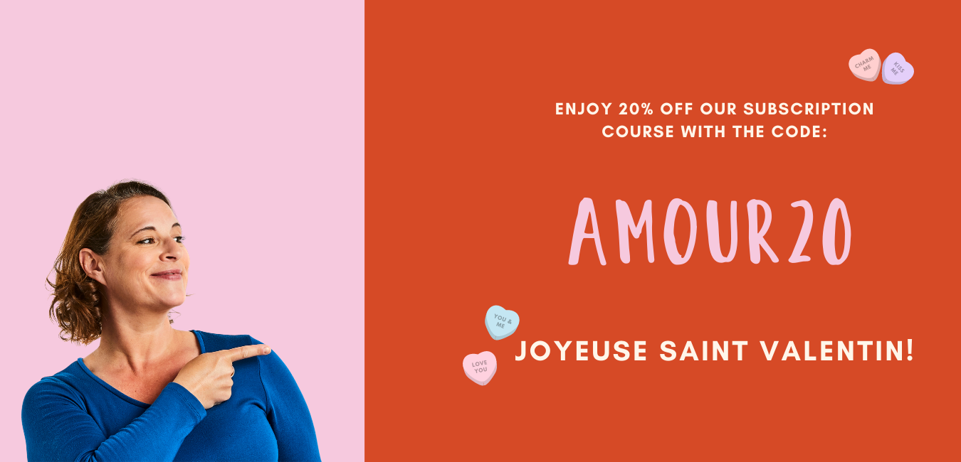 This weekend, enjoy a 20% OFF discount on our subscription course by using the code AMOUR20. Give yourself and a loved one the amazing gift of French.