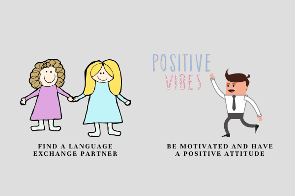 Your attitude to learning will also play a significant role in how fast you reach your French language goals. Approaching it with a positive attitude will make you more open to learning. You'll be motivated to study and learn as much as possible. If you can, find a language exchange buddy. Having someone who you can practice with is one of the fastest ways to learn a language. You can join a language class or club, find a Skype buddy online, or speak to native speaking family members.